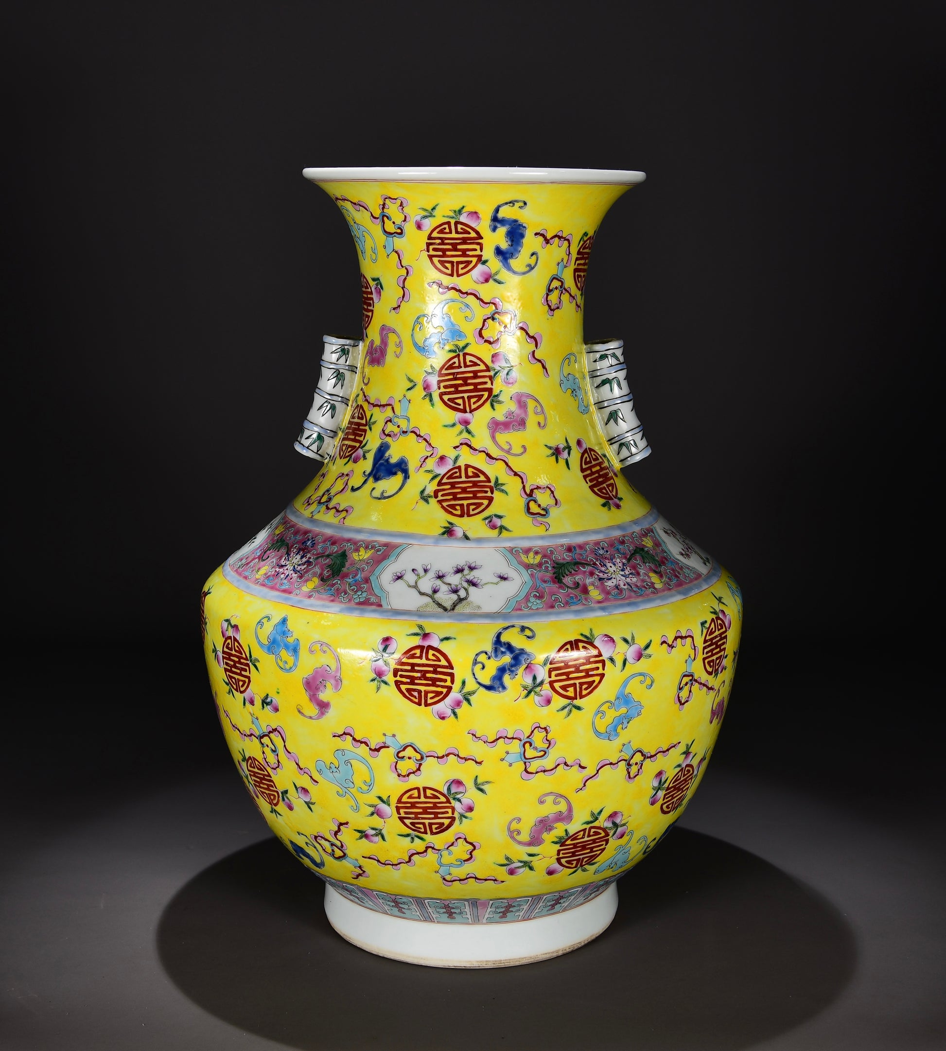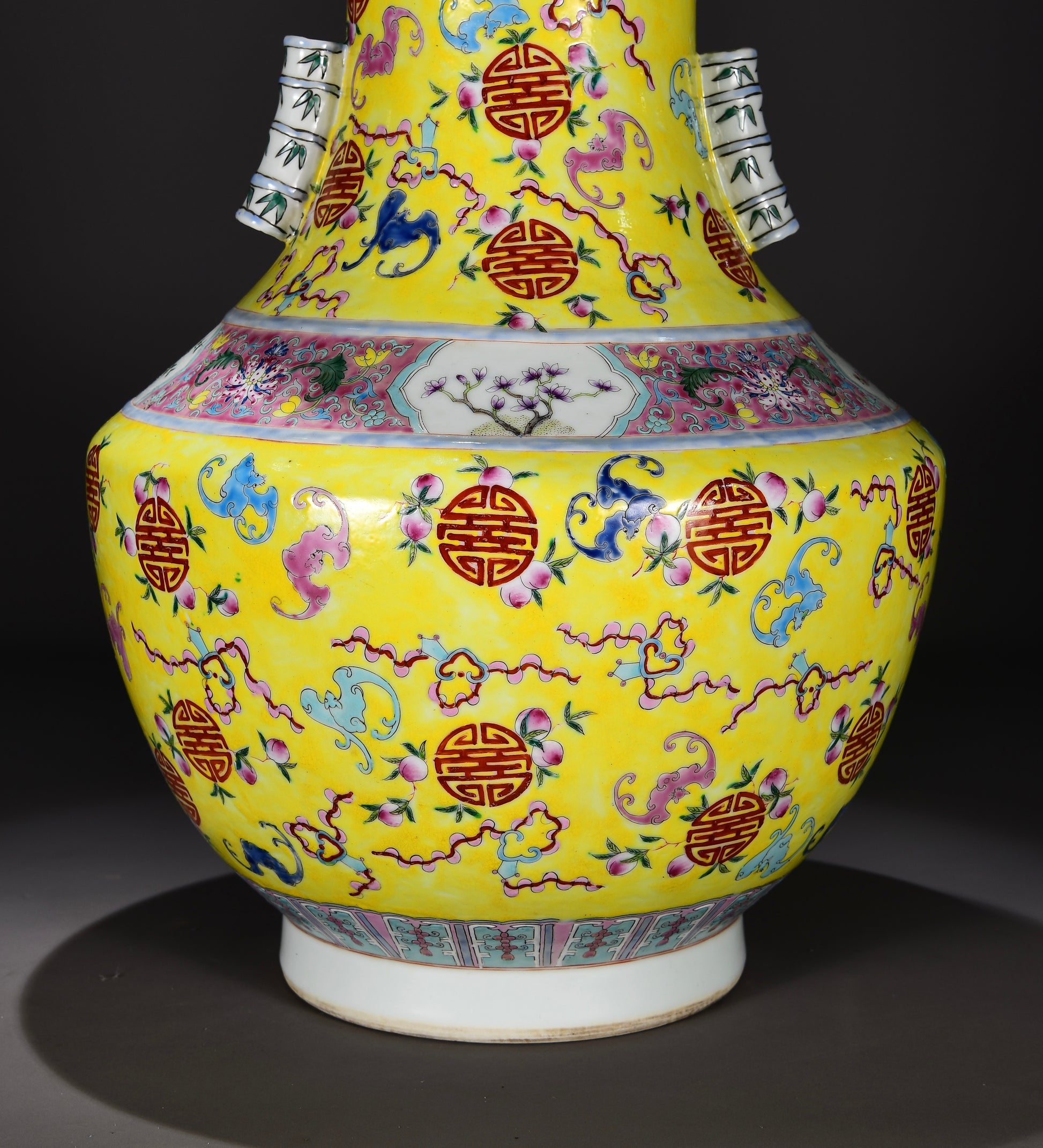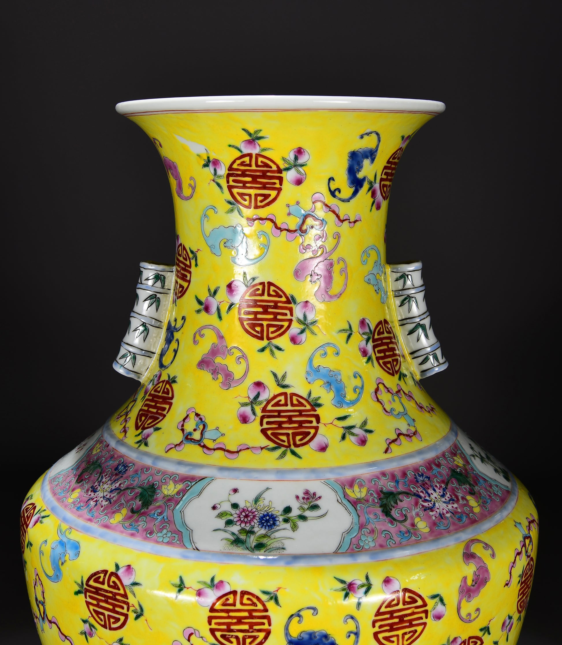 Ancient China Antique 1644–1912 Qing Dynasty Qianlong Porcelain FuShou Pattern Zun Vases